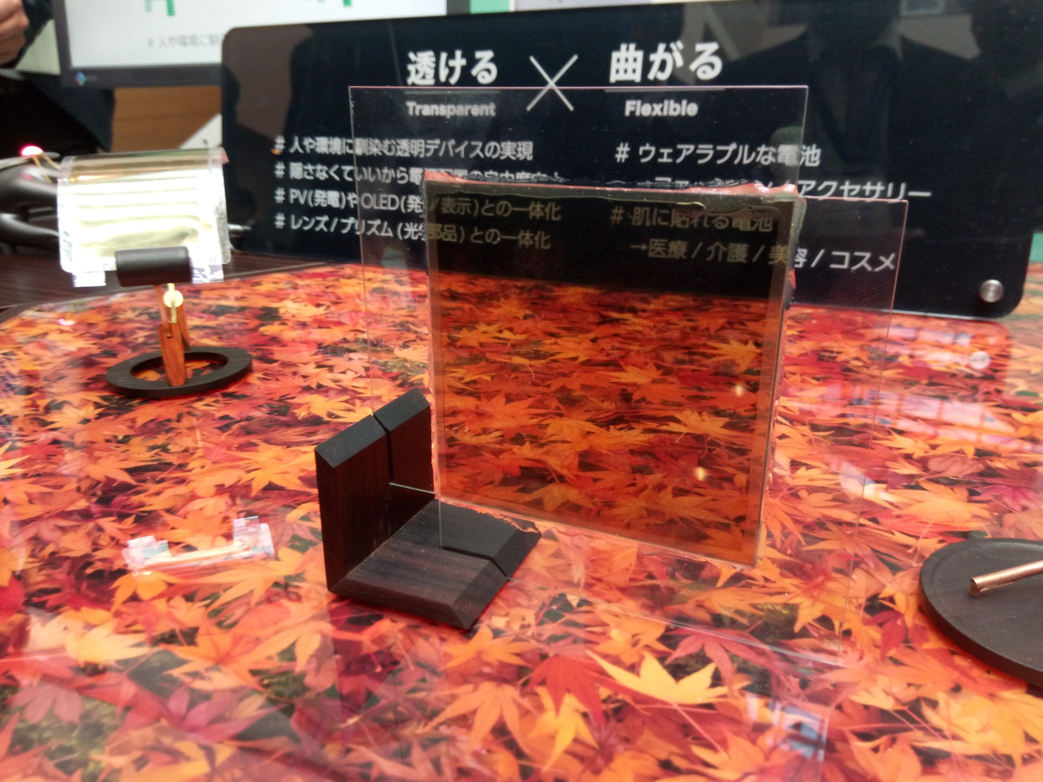 今回は、複数の人間で喋っても、特定の人の声だけを抽出する技術とか、向こうが透けて見える電池とか、そういうのを見てきました。電池の方はどうやら、昨日のトレたまで紹介されたようで、人が結構集まっていました。私もネットのニュースで読んでいましたので、実物を触らせてもらい、且つ、写真も撮らせていただきました。